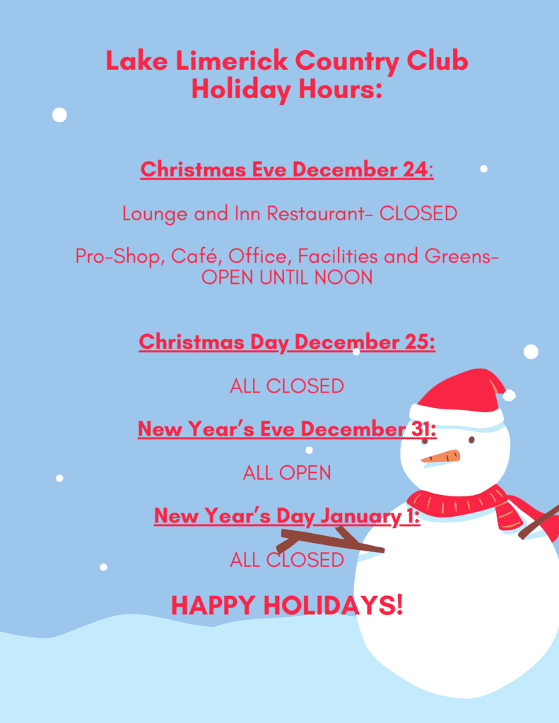 Lake Limerick Ladies Club (Golf League) What is the Lake Limerick Ladies Club? A group of women who get together to golf during the golf league season, April 1 – Sept 28th. You can choose to golf either 9 holes … or 18 holes (if you have a handicap of 46 or less).