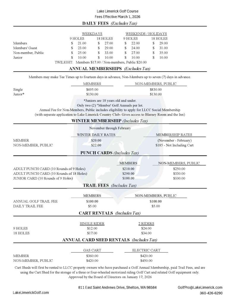2026-27 Annual Golf Rates