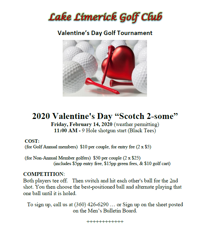 You can pass this along to other golfers. Spouses/SO’s are welcome.